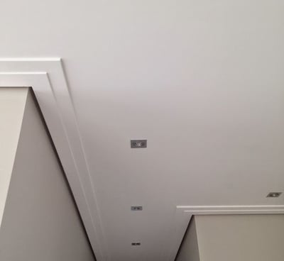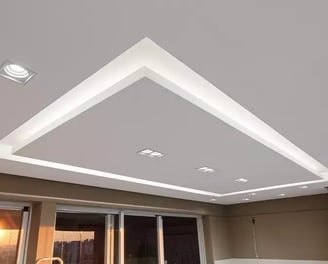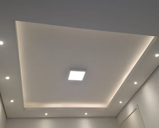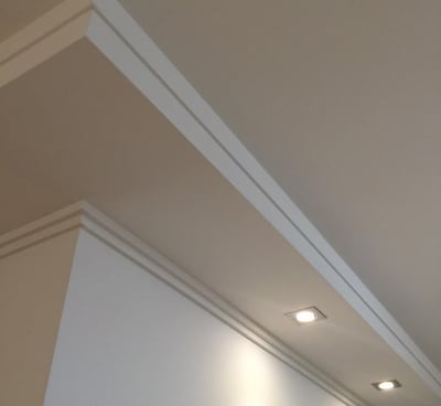 Teto rebaixado, sancas, molduras e divisórias com acabamento impecável.